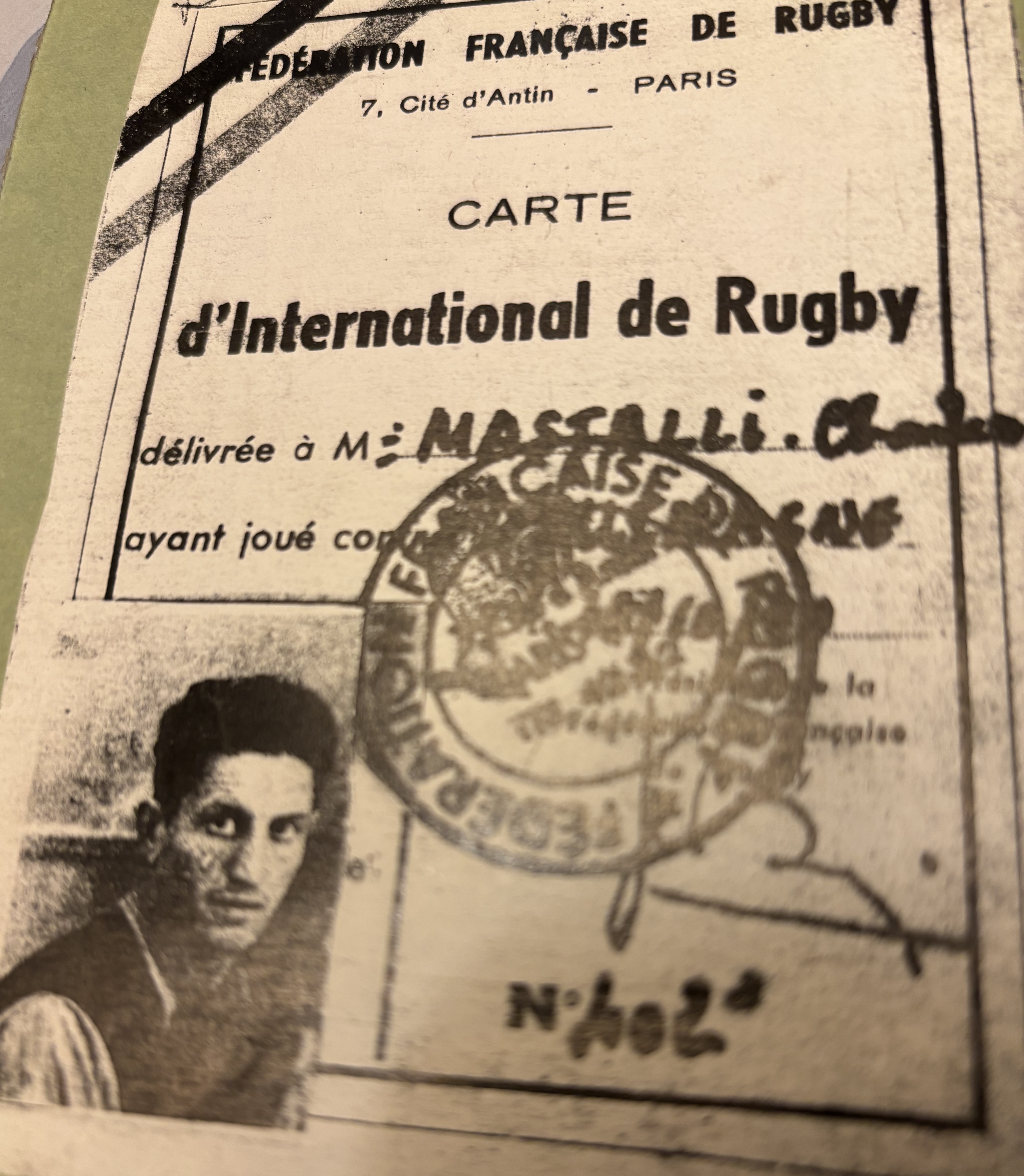Carte de joueur international de Rugby