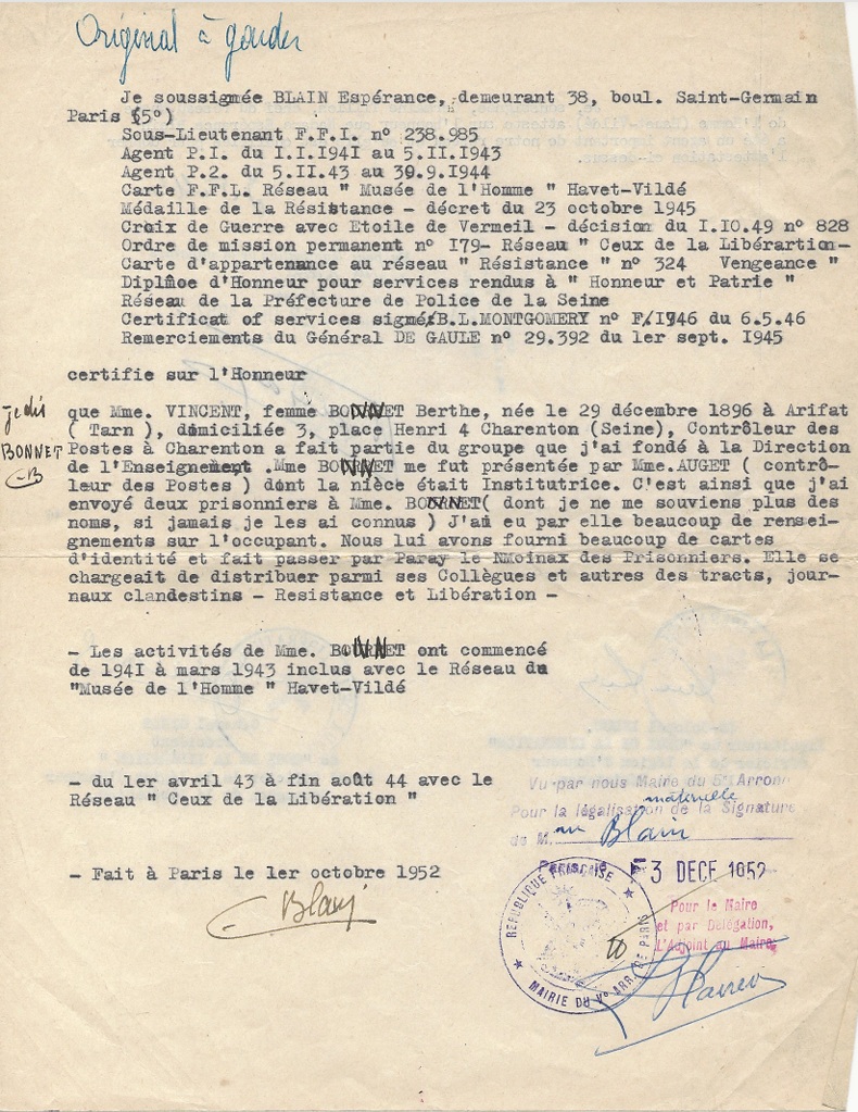 Organisation de Résistance : Musée de l'Homme - Ceux de la Libération