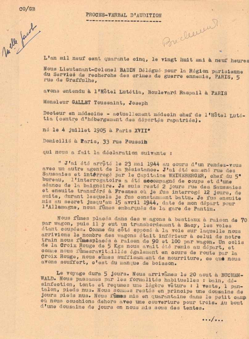 Dossier SHD-Caen 21p610881 ; © Arolsen Archives, 2021 ; Informations et documents communiqués par M. Pascal-Emmanuel Gallet, son fils (oct 2025) ;