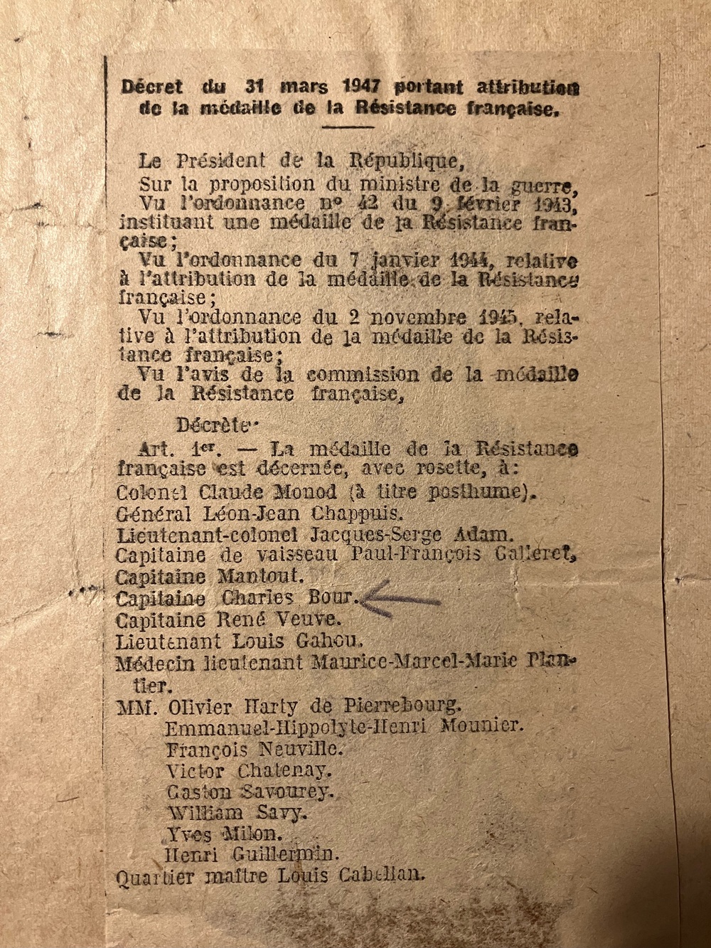 - Chevalier de la légion d’Honneur par décret du 8 février 1946