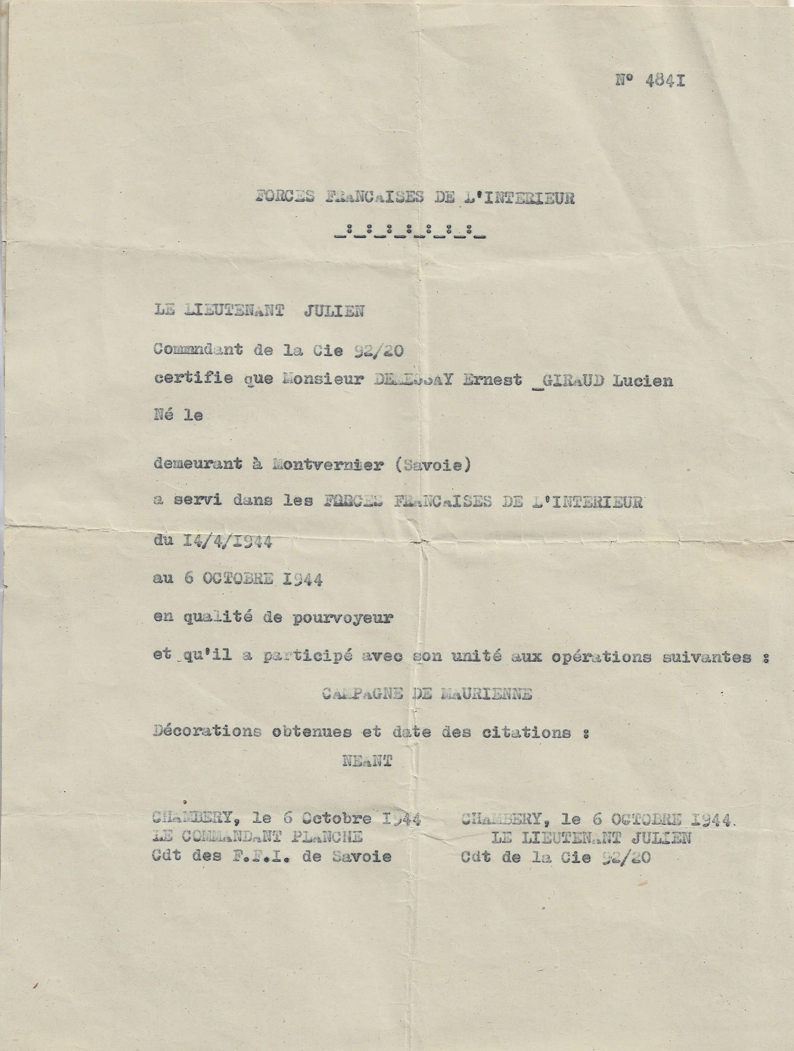 Décédé en avril 2021, Lucien Giraud combattu comme pourvoyeur) en Savoie (Maurienne, résident) Cie 92-20 Montvernier/Montpascal. Cie intégrée ensuite au 1er bataillon.