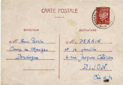 Je vous remercie de votre carte du 5 courant que j'ai reçue aujourd'hui seulement. Je tiens particulièrement à remercier mon oncle pour les démarches qu'il a tentées pour mon élargissement. Je ne sais pas si cela aboutira , je vous avouerai même que je ne le crois guère, mais de toute façon, le temps de la fin approche et déjà est plus près que le début de l'aventure. En toute franchise, je vous déclarerai que je suis très bien ici (malgré que je préférerais me trouver près des miens ) et que le temps passe assez rapidement. Je suis dans un milieu d'officiers et hauts fonctionnaires coloniaux très sympathiques, dont le contact est très intéressant et instructif. Les parties d'échecs contribuent à passer le temps. Le soleil m'a déjà gratifié d'un sacré coup sur mes épaules et je suis en train de changer de peau.