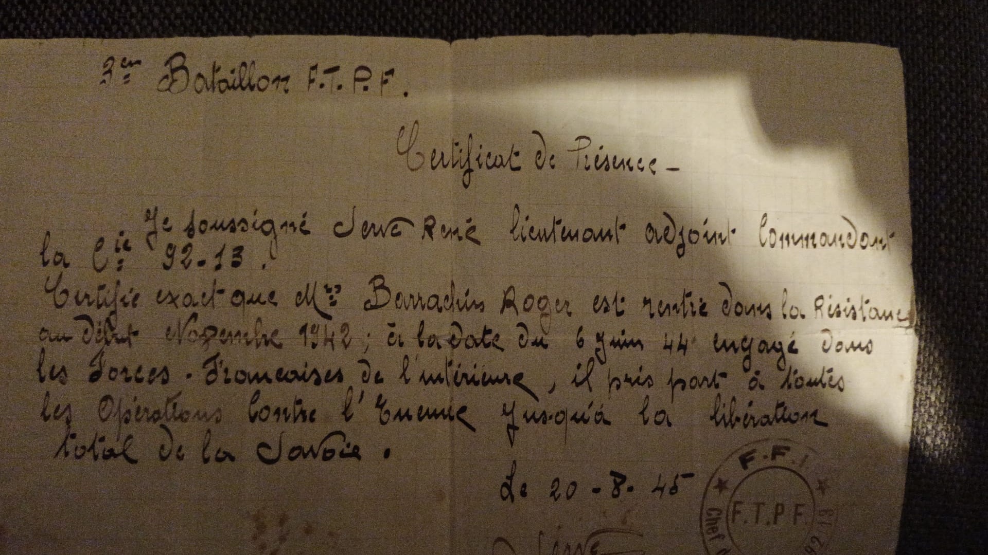 Organisation de Résistance : Compagnie des Francs-Tireurs et Partisans (FTP) 92.13 de Savoie du 1er mars au 20 septembre 1944.